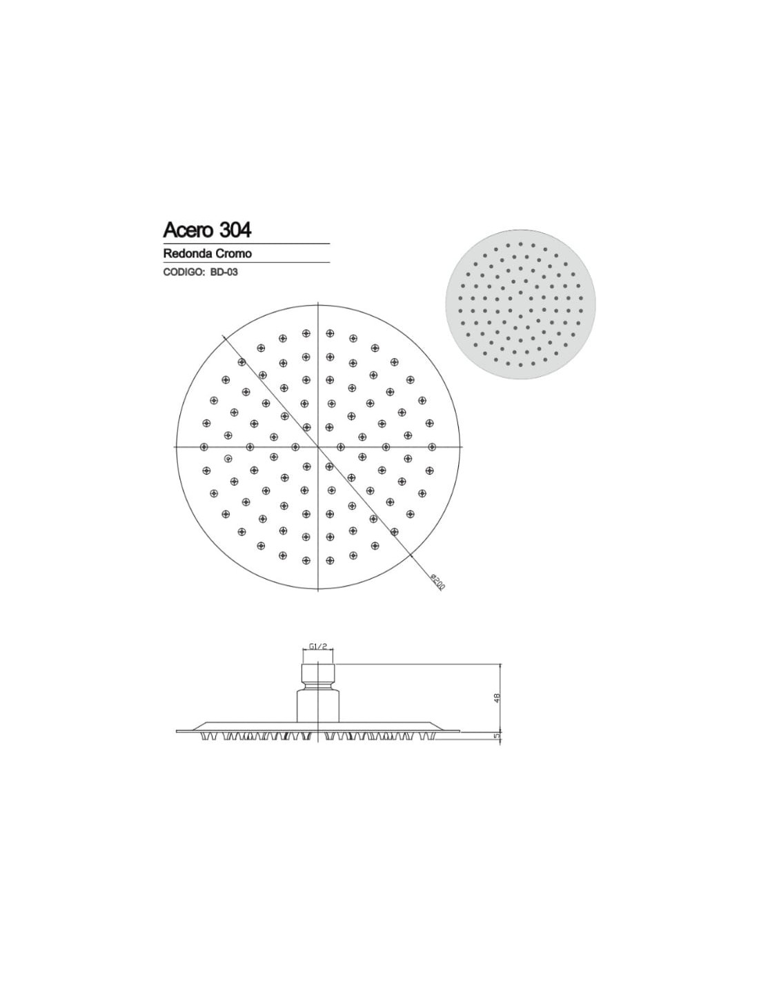 Flor de ducha cromada de diseño moderno en forma circular, ideal para todo tipo de baño.