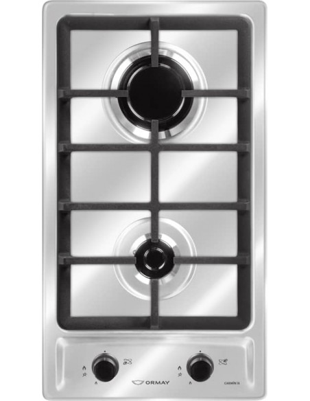 Anafe 2 Hornallas Gourmet Carmin-ix Ormay: compacto y elegante, ideal para cocinas modernas. Con 2 hornallas eficientes y un acabado en acero inoxidable, este anafe de 28,8 cm de ancho es perfecto para espacios reducidos sin renunciar al estilo y la funcionalidad.