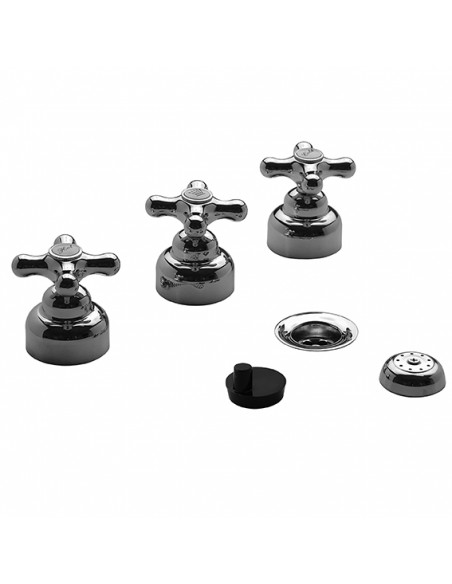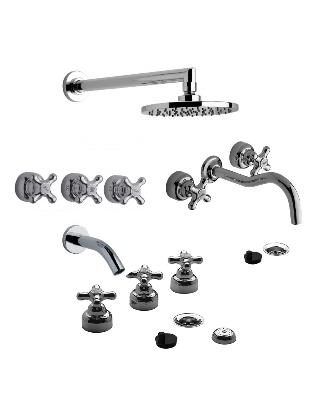 El Combo Grifería FV Malena Doble Comando incluye las tres piezas principales: lavatorio, bidet y ducha, ofreciendo un conjunto armónico con terminación cromo brillante. Su diseño sobrio y clásico se adapta a cualquier tipo de baño, combinando estilo y durabilidad.