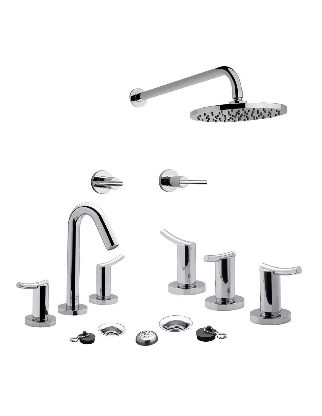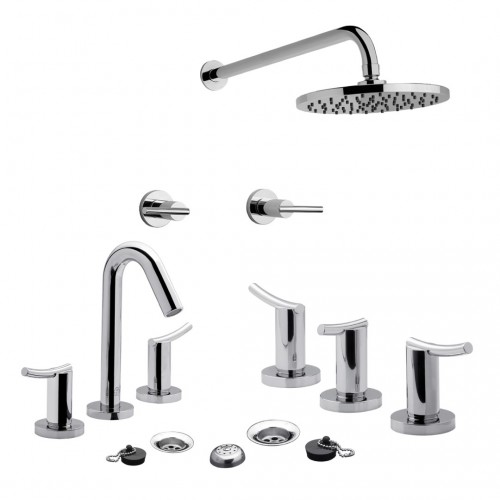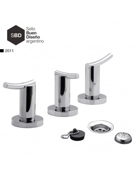 El Combo Grifería FV Libby Doble Comando incluye las tres piezas principales del baño: lavatorio, bidet y ducha, todas con un diseño contemporáneo y líneas suaves que aportan elegancia y confort al espacio.