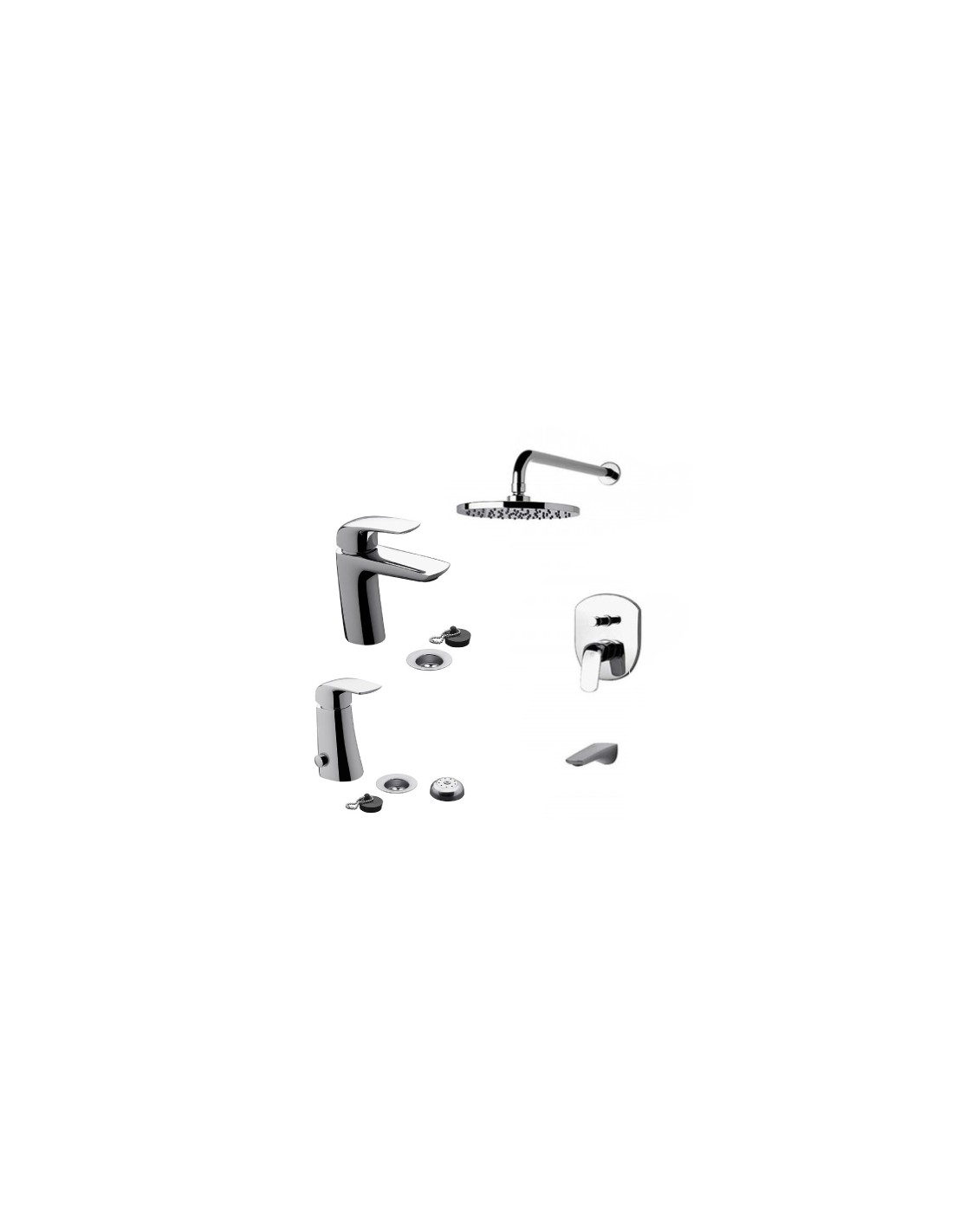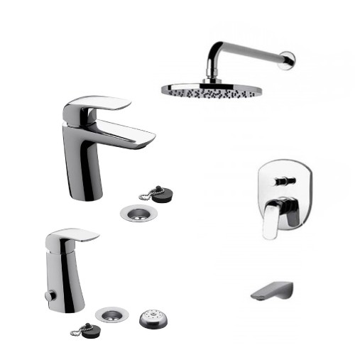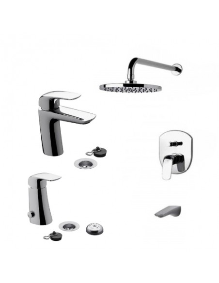 Incluye grifería para lavatorio, bidet y ducha, todo dentro de la línea Epuyen, logrando una estética uniforme y elegante en todo el baño.