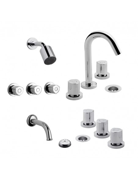 El Combo Grifería Radal Doblecomando FV incluye lavatorio, bidet y ducha, tres piezas que combinan calidad, confort y estética. Su acabado cromo brillante realza cualquier ambiente, mientras que su sistema doblecomando permite regular el agua con precisión y suavidad.