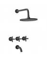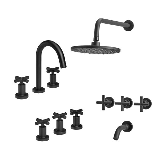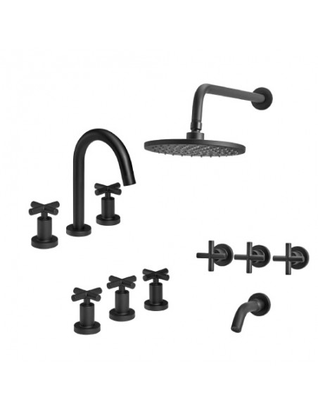 El Combo Grifería Black Velvet Doblecomando Peirano combina diseño sofisticado y máxima funcionalidad. Su acabado negro mate transforma cualquier ambiente, aportando estilo y distinción. Incluye griferías para lavatorio, bidet y ducha, todas con sistema doblecomando, que permite regular agua fría y caliente con precisión y suavidad.