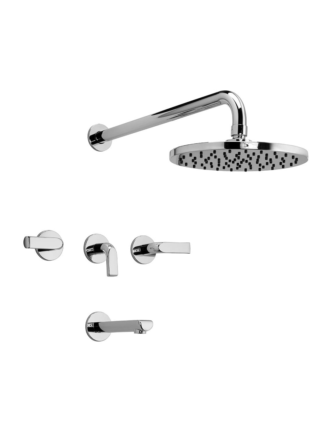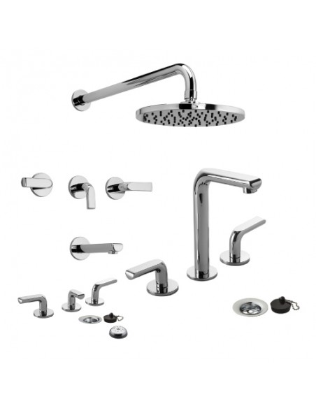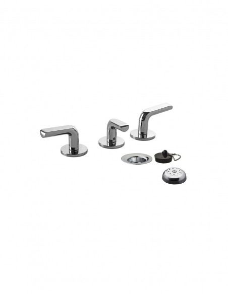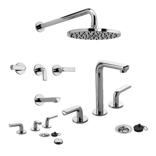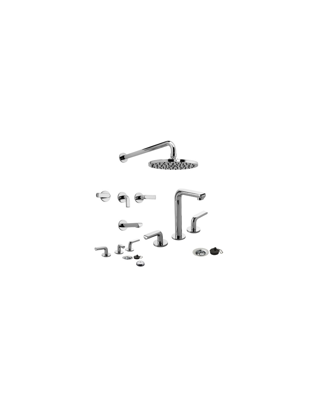 Incluye griferías para lavatorio, bidet y ducha, todas pertenecientes a la línea Ciprés, para lograr una estética uniforme y elegante en todo el baño.