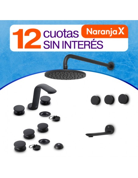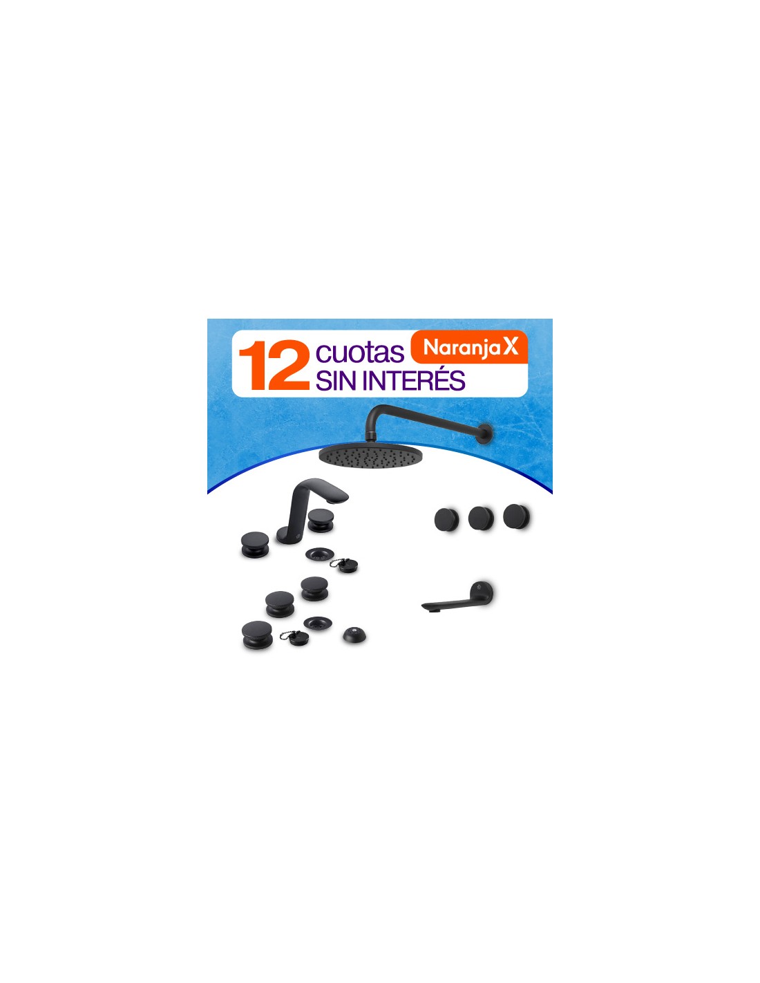Su sistema doblecomando permite regular con precisión la temperatura y el caudal del agua, mientras que el acabado negro le da un toque de diseño exclusivo. Fabricado por FV, sinónimo de calidad y respaldo, este combo garantiza un uso cómodo, eficiente y de larga vida útil.
