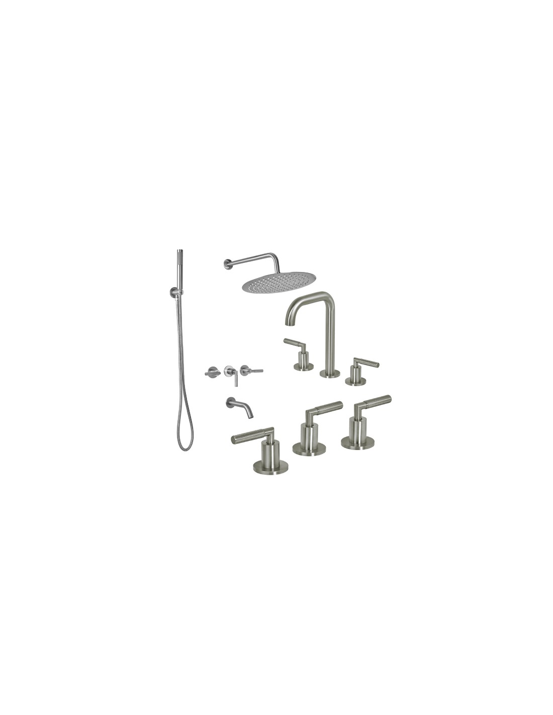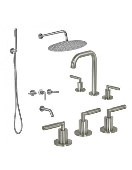 Fabricado en acero inoxidable cepillado, este combo ofrece resistencia a la corrosión y al desgaste, conservando su aspecto impecable con el paso del tiempo. El sistema doblecomando brinda un control preciso del caudal y la temperatura, aportando confort y durabilidad.