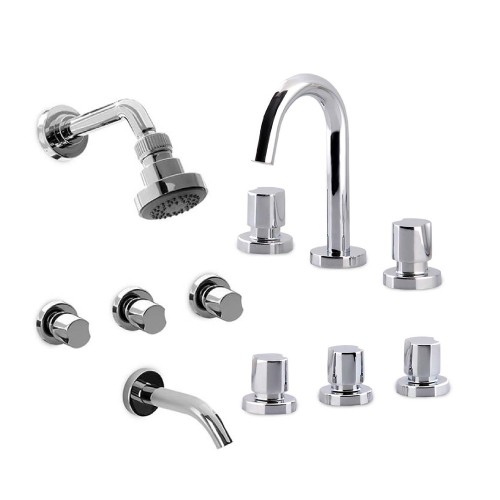 El Combo Grifería Galena Doblecomando Vasser reúne elegancia, funcionalidad y resistencia en un mismo conjunto. Incluye griferías para lavatorio, bidet y ducha, todas con acabado cromo brillante, ideal para quienes buscan un baño sobrio y duradero.