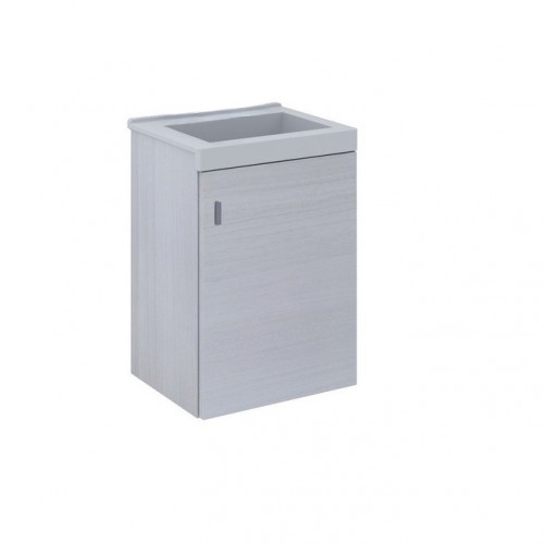 El mueble está fabricado en melamina resistente a la humedad, lo que garantiza durabilidad y fácil mantenimiento. Su formato colgante permite liberar espacio en el piso y facilita la limpieza diaria. Incluye una bacha de apoyo Aqualine, de diseño simple y resistente, que completa el conjunto con equilibrio y estilo.