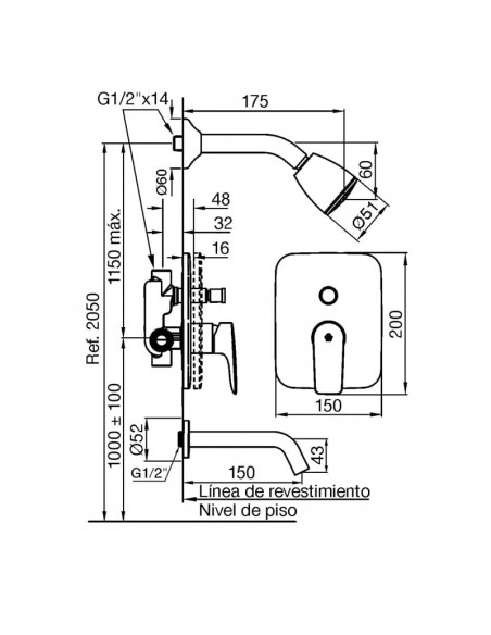 Su diseño monocomando cromado, con tecnología de cierre cerámico, combina la elegancia clásica con un cierre suave y durabilidad excepcionales. Disfruta de un caudal controlado y función anticalcárea, creando una ducha placentera y funcional. Este accesorio de baño, con su diseño con transferencia, se adapta perfectamente al estilo clásico, llevando la sofisticación a tu espacio de baño.
