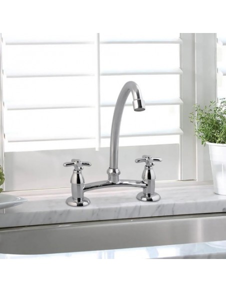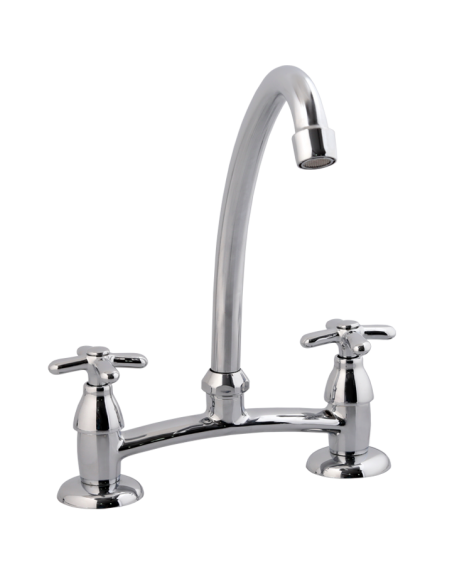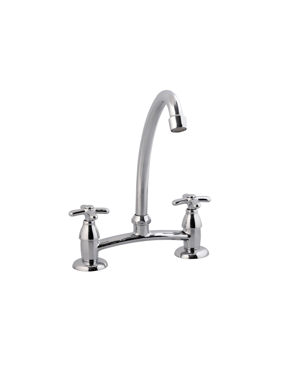 De diseño clásico. Posee cierre tradicional compuesto por una gomita que al girarse aprieta y comprime el paso del agua permitiendo controlar su caudal, Se instala en la mesada y es doble comando