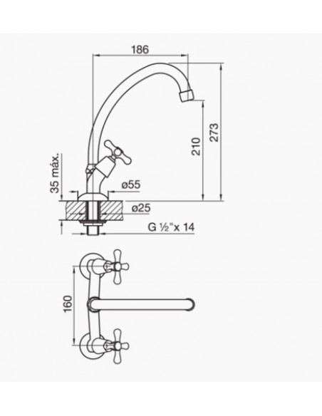 Su forma de llave en cruz es fácil de manipular y proporciona un agarre cómodo, permitiéndote ajustar el flujo de agua con precisión. Además, su altura del pico es alto, lo que te brinda mayor espacio entre el grifo y el lavabo.