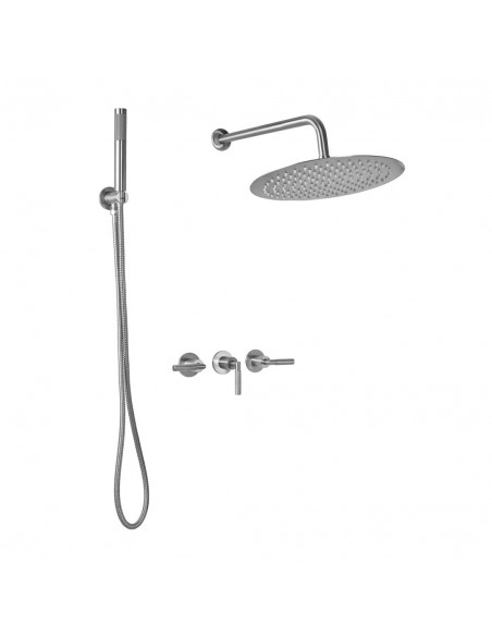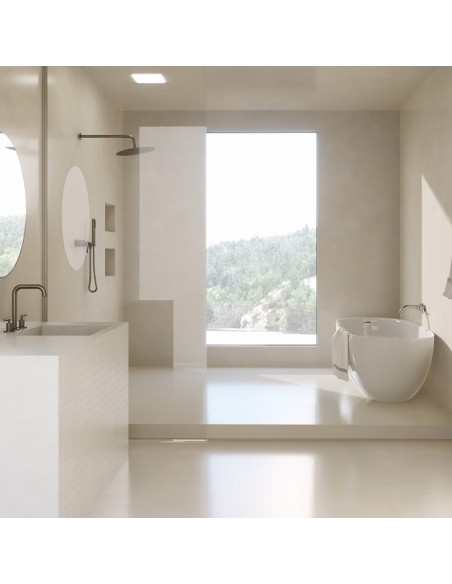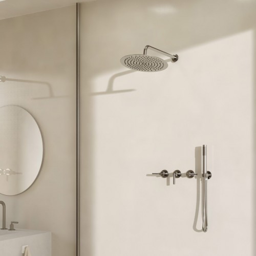 Es ideal para duchas empotradas o instalación a pared, y su estética níquel pulido da un look moderno que se integra con cualquier estilo de baño.