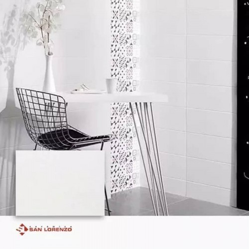 Es un revestimiento blanco de calidad primera para paredes interiores. Con acabado brillante y estilo liso, es ideal para áreas de bajo tránsito. Sus bordes rectificados aseguran un ajuste perfecto. Cada pieza mide 33x45,3 cm y cada caja cubre 2.24 m².