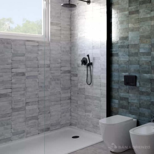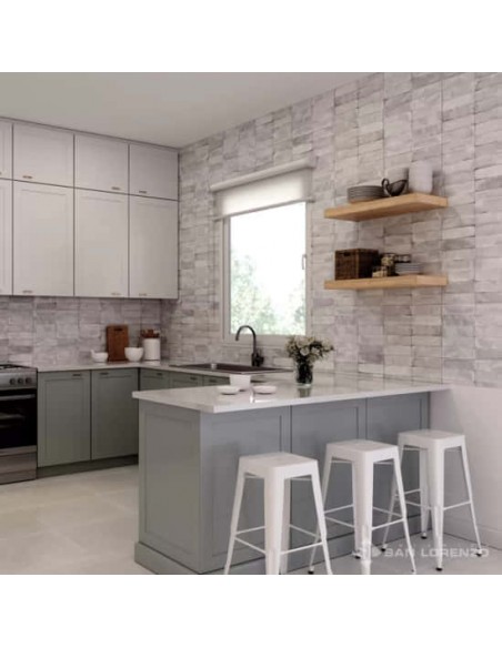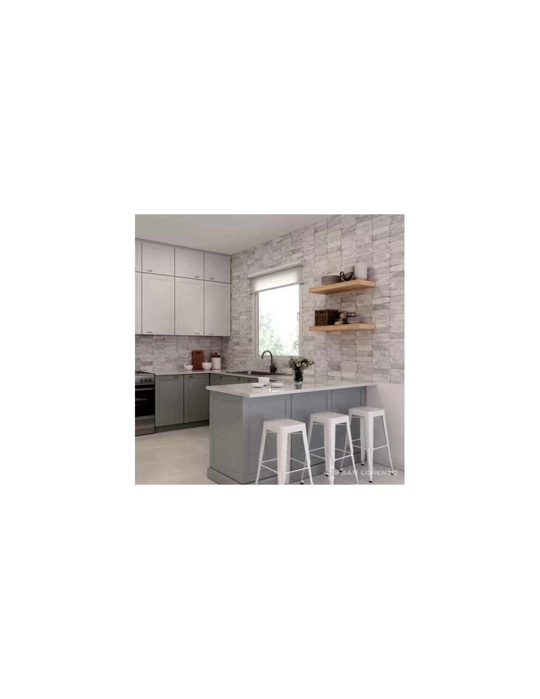 El Cerámico Wall Ceniza de San Lorenzo es la solución ideal para quienes buscan un revestimiento con personalidad y estilo. Su diseño en tonos grises con un patrón visual que simula pequeños listones o texturas lineales, aporta profundidad y un aire contemporáneo a cualquier ambiente interior, ya sea en baños, cocinas o paredes destacadas de salas de estar.