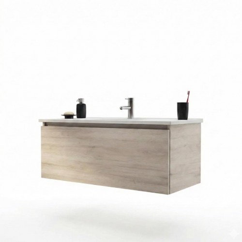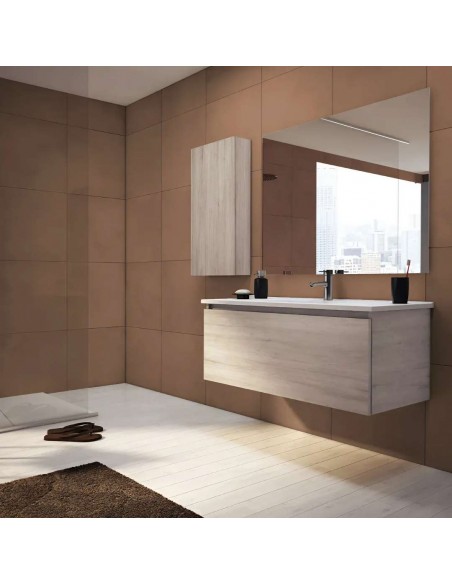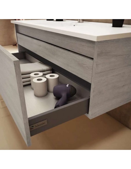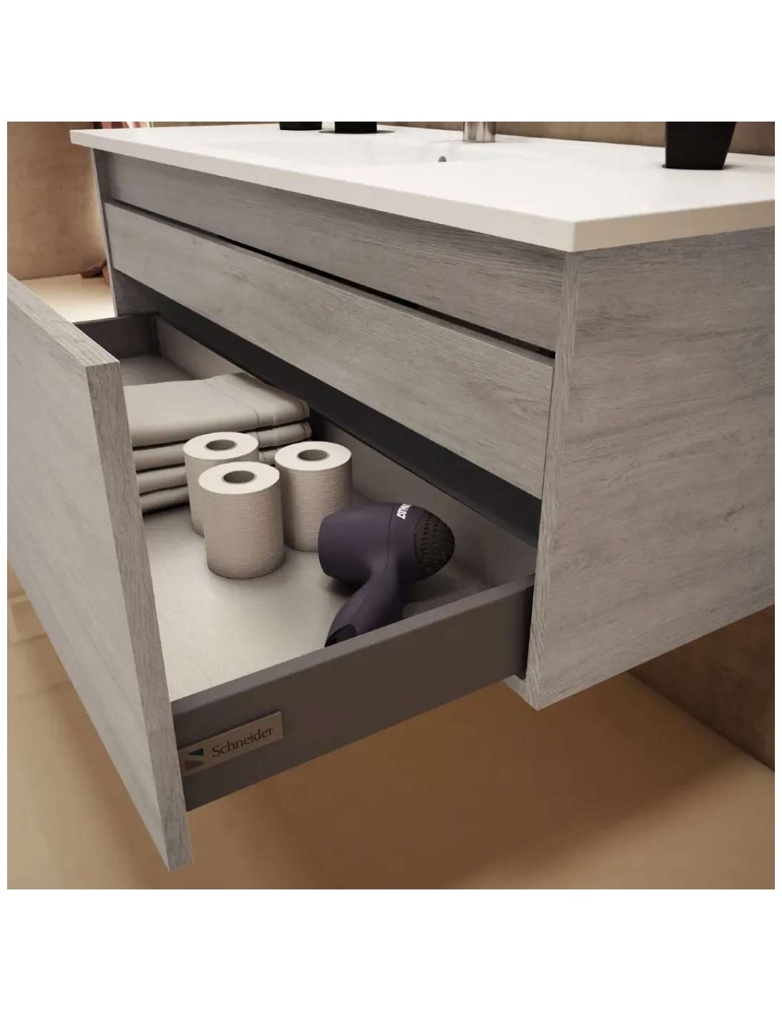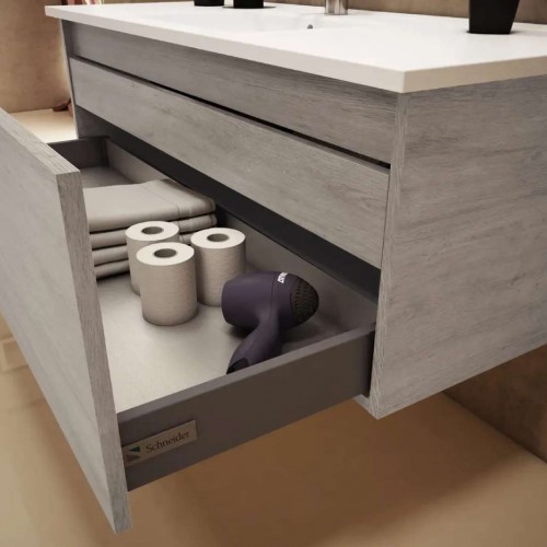 Mueble vanitory colgante City 120 cm de Schneider con recubrimiento PVC California, diseño moderno y amplio espacio de guardado para baño.