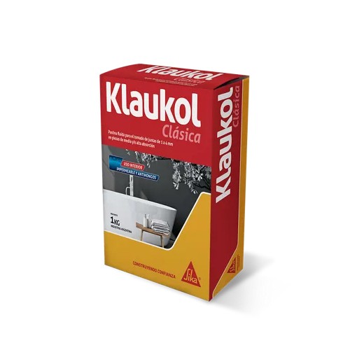 Pastina Klaukol color boro de 1 kg, ideal para juntas finas de cerámicos. Impermeable, fácil de aplicar y con protección antihongos.