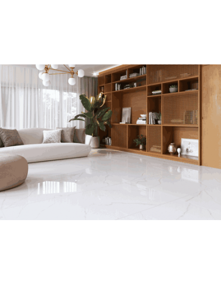 El Cerámico Calacata Lux Pulido 72x72 cm de Angelgres combina la belleza del mármol Calacatta con la practicidad de un cerámico de alta resistencia. Su terminación pulida y brillante genera una sensación de amplitud y lujo en cualquier espacio.